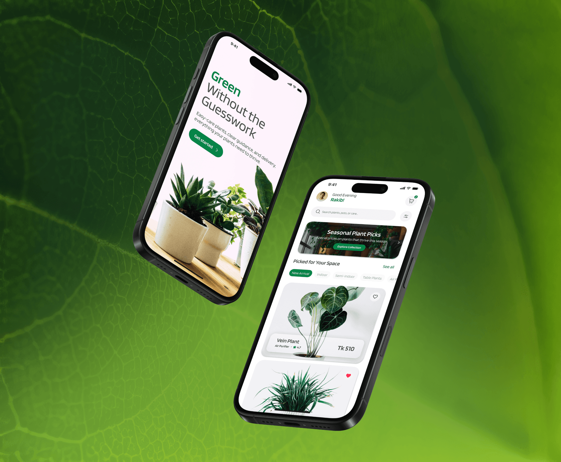 VertiGreen is a concept mobile app UI for a nursery brand, designed with calm, nature-inspired visuals and clear hierarchy to create a simple, intuitive shopping experience from discovery to checkout.