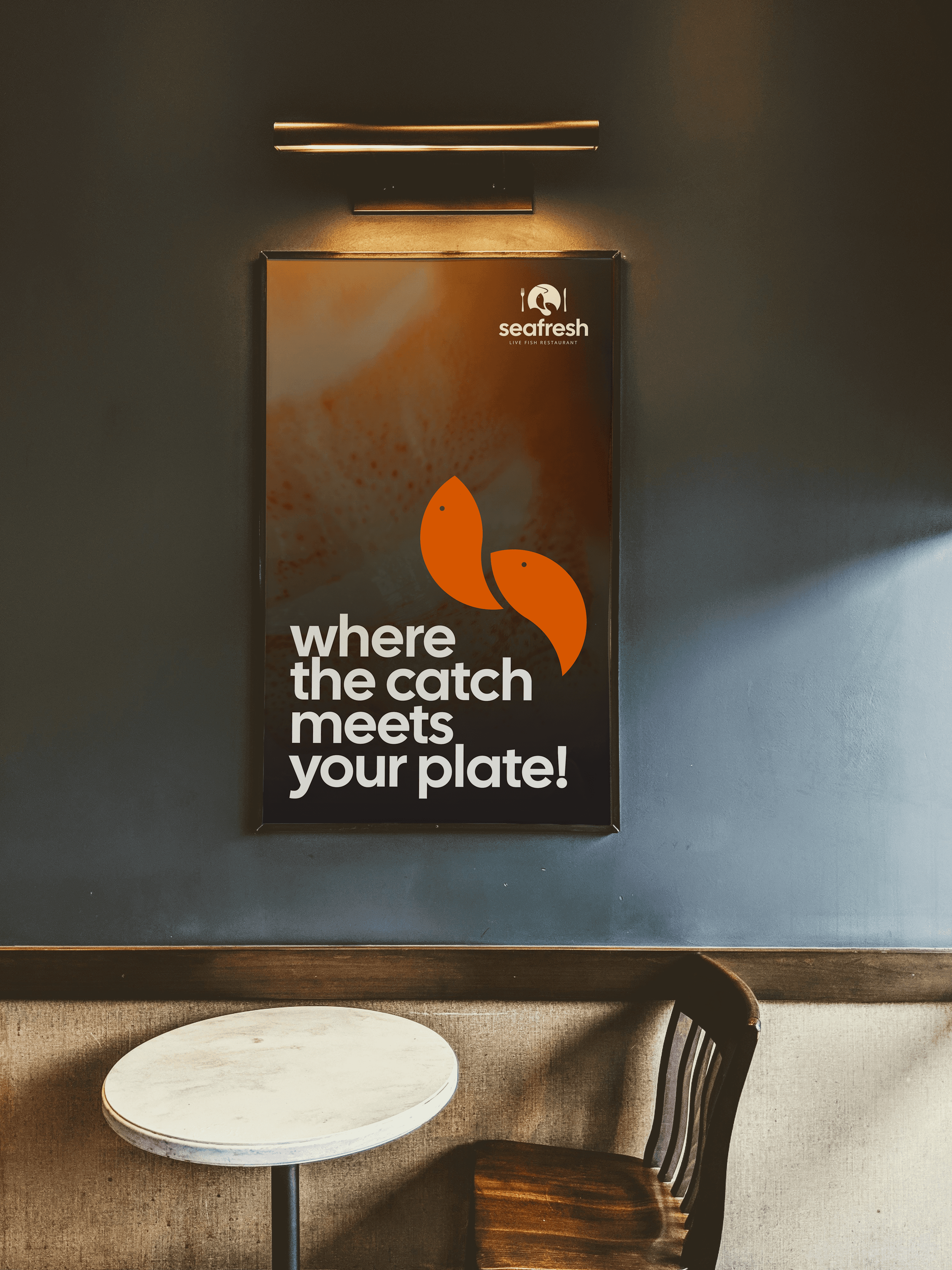 A vibrant brand identity for Seafresh Live Fish Restaurant, capturing the freshness of the ocean with elegance, movement, and authenticity.